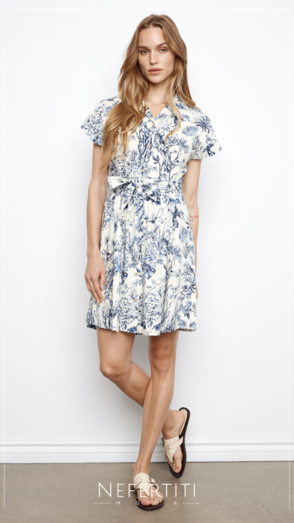 Vestido sin manga hojas Azul Beige Cafe D7276
