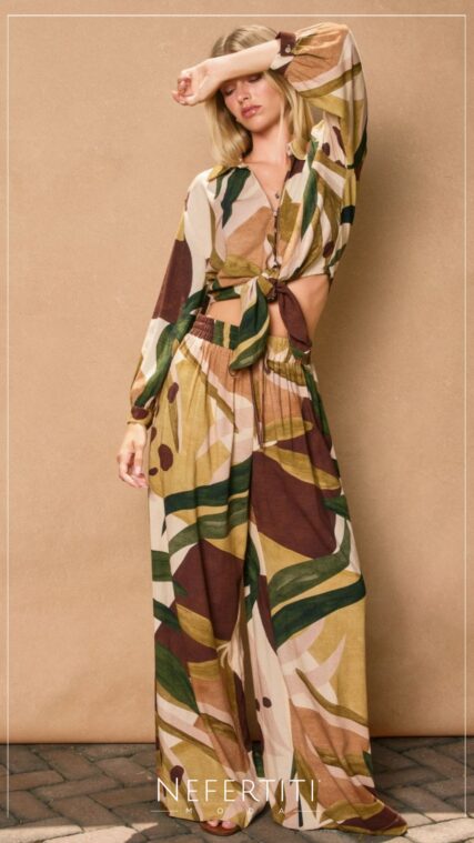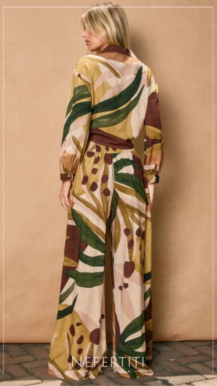 Blusa manga larga nudo hojas Verde Cafe T16890