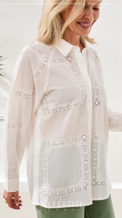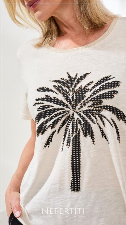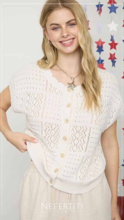 Blusa manga corta tejida botones Crema T17032