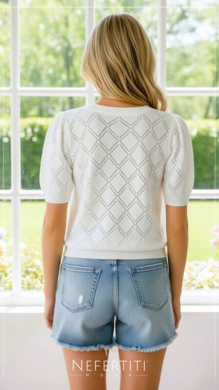 Blusa manga corta tejida limones Blanco T16928