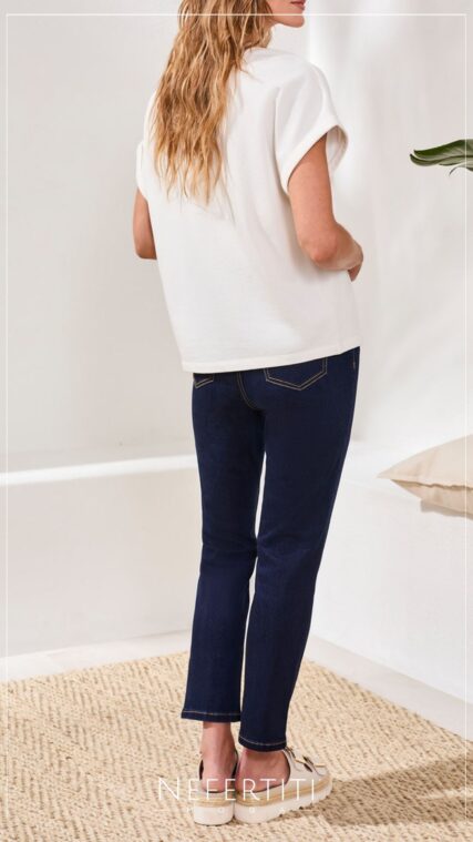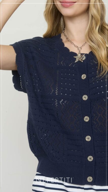 Blusa manga corta tejida botones Azul Marino T17035