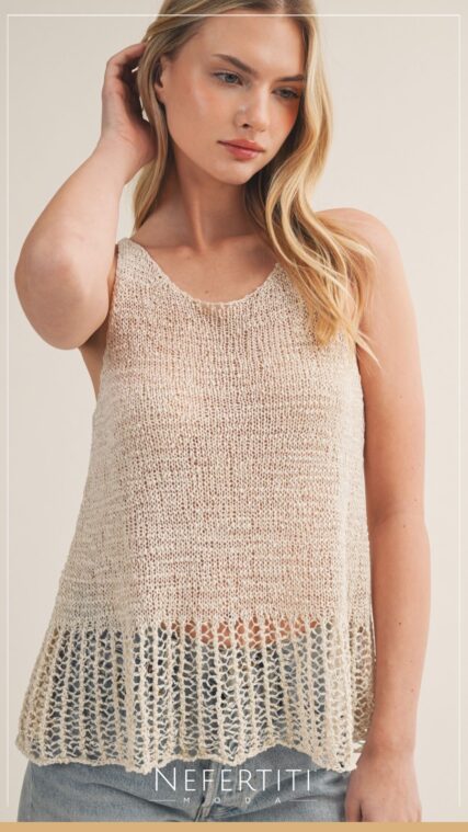 Blusa tejida sin manga Crudo T16956
