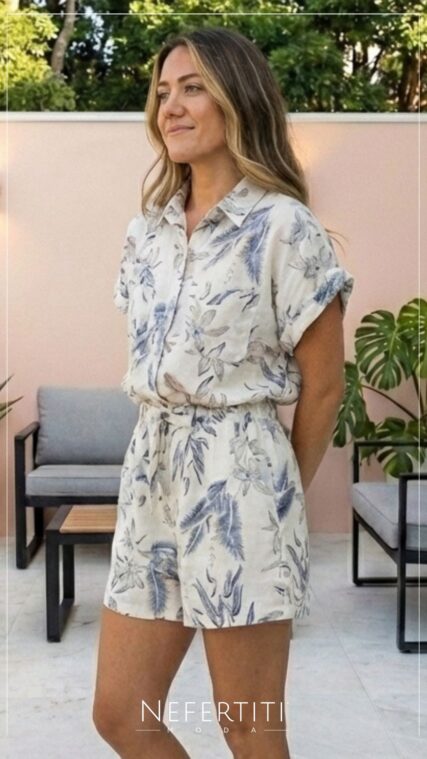 Blusa manga corta flores Menta Tomate T16908