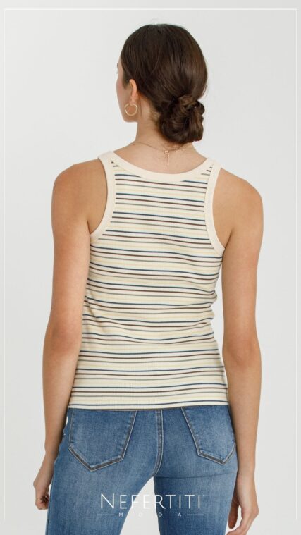 Blusa sin manga rayas Beige Oliva T16640