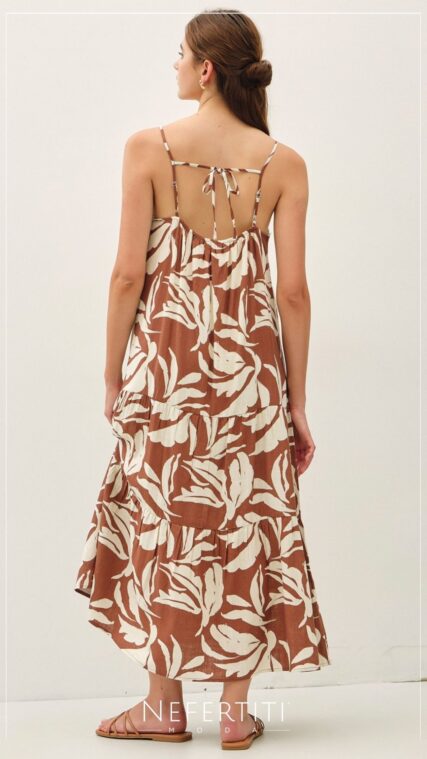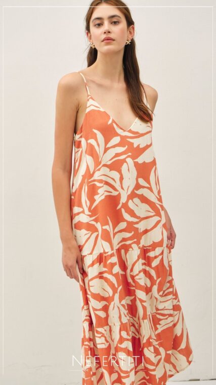 Vestido maxi hojas abstractas Naranja Quemado D7214