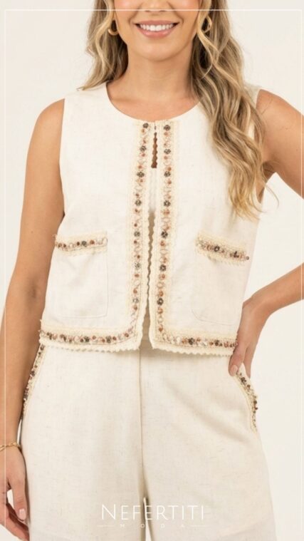 Conjunto Blusa y pantalon bordado Negro Beige D7184