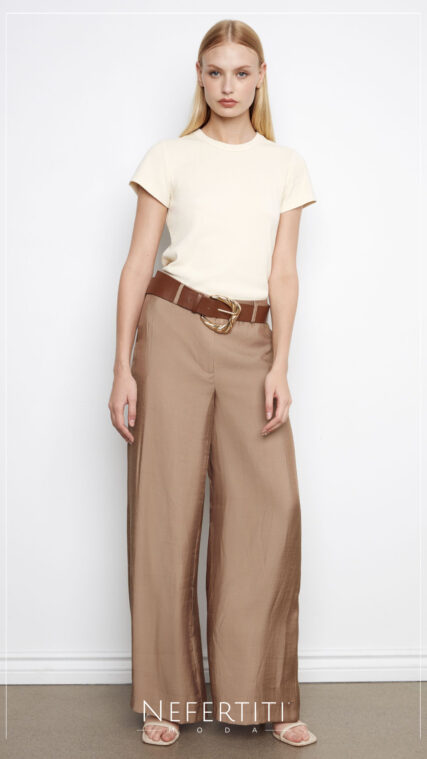 Pantalon satinado con faja Cafe PL5199