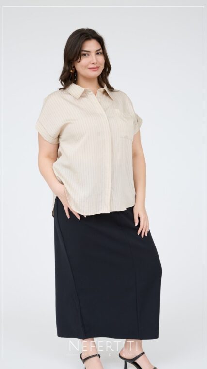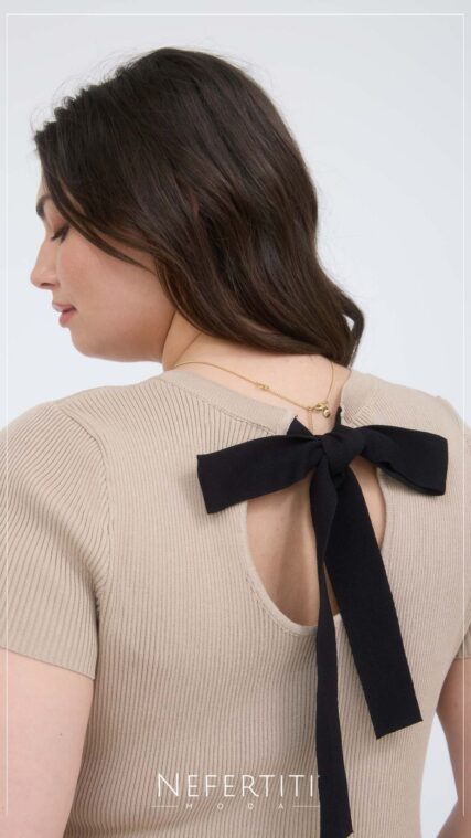 Blusa lazo en espalda acanalada Beige Negro TP3611
