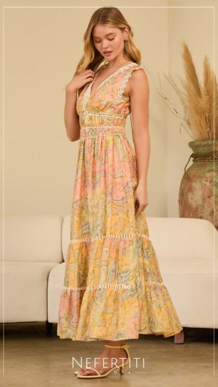 Vestido maxi paisley encaje pastel Rosa Verde Beige D7388