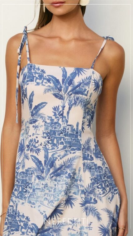 Vestido maxi lazos paisaje playa Azul Blanco D7362