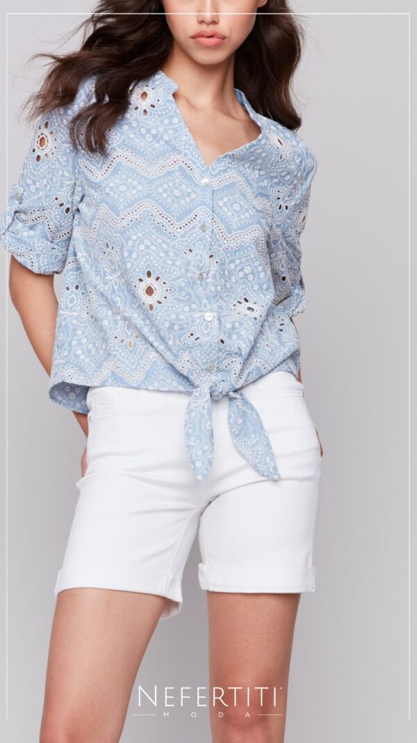 Seleccionar opciones This product has multiple variants. The options may be chosen on the product page Añadir a la lista de deseosBlusa mezclilla manga corta Azul Claro T14235