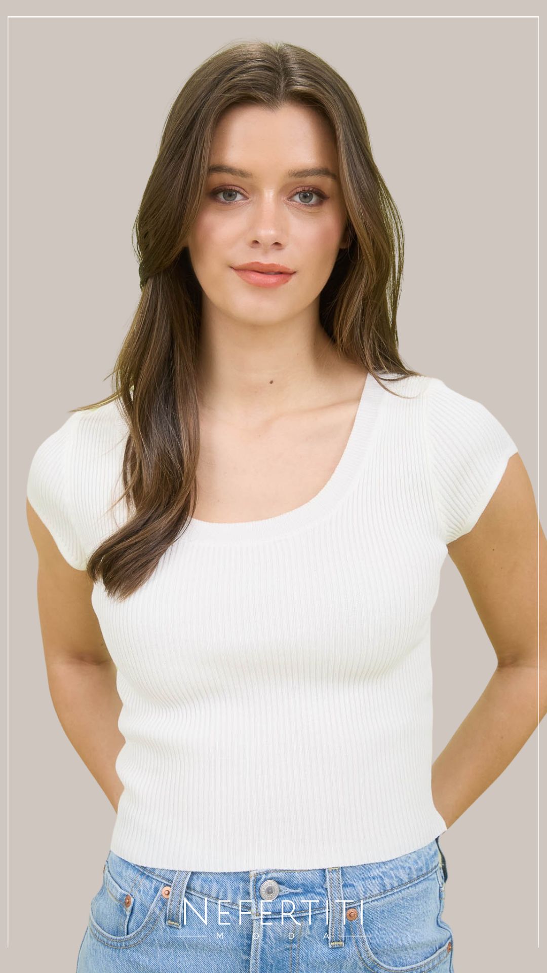 Top tirante ancho acanalado Taupe T14077