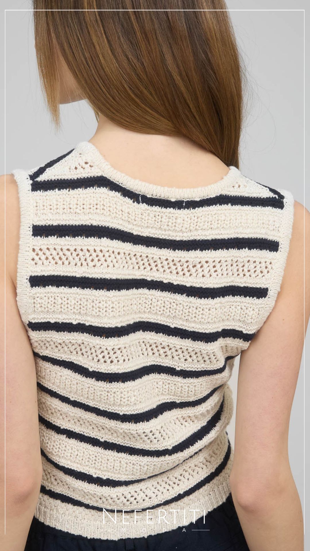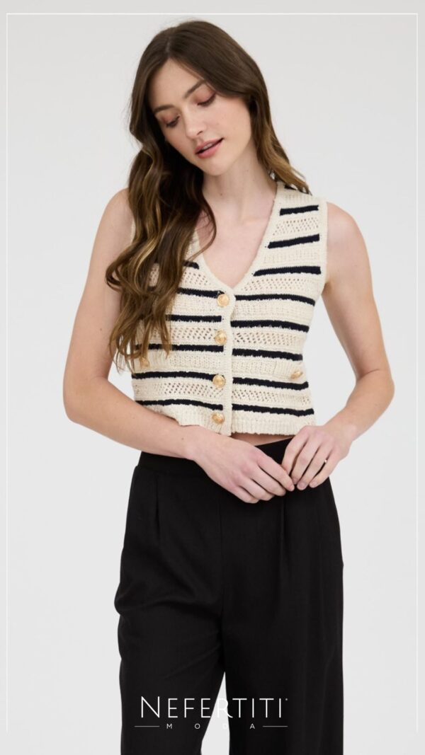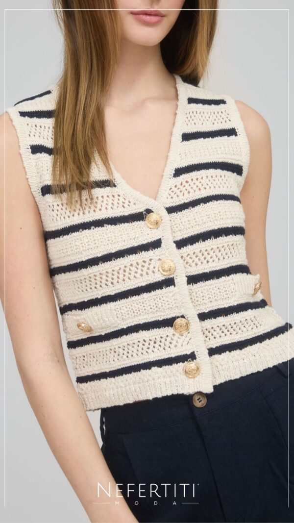 Blusa botones dorados tejido rayas Marfil T16139