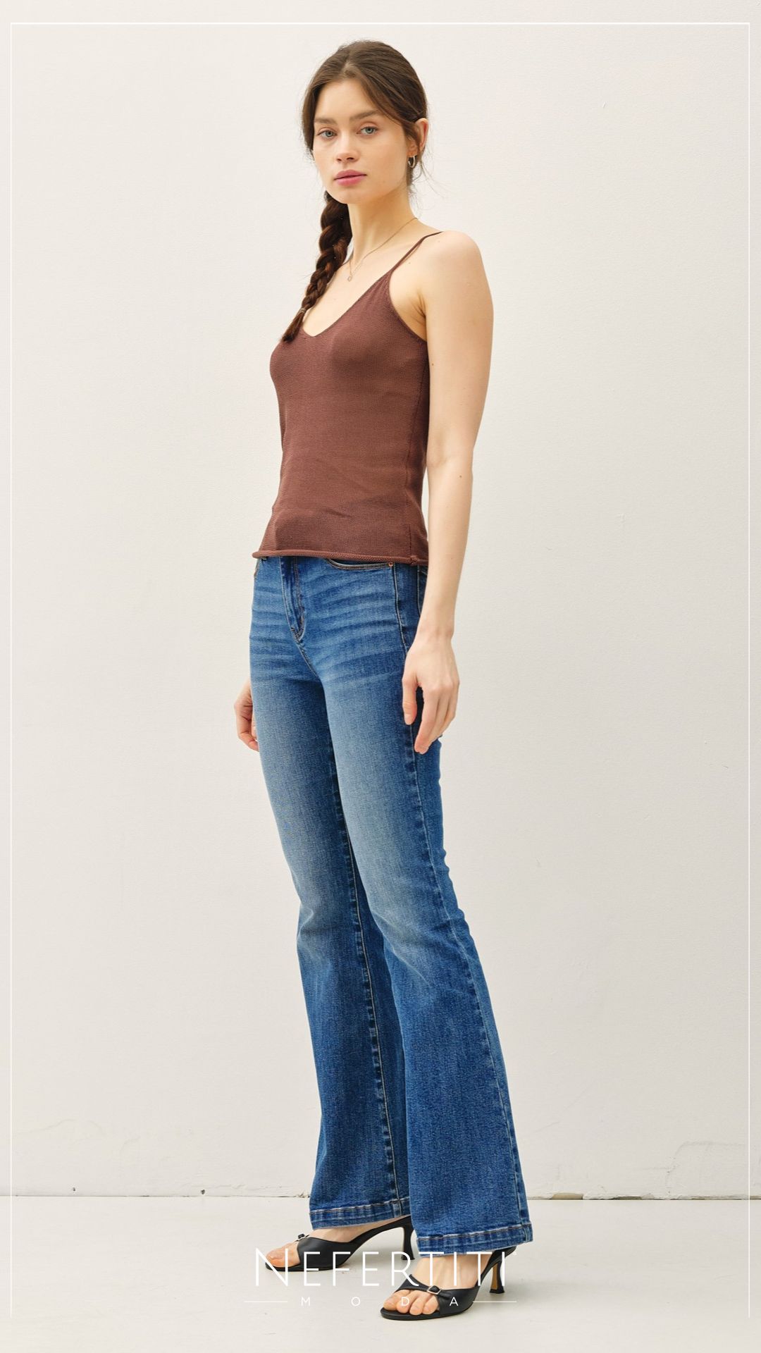 Top tirante ancho acanalado Negro T14076