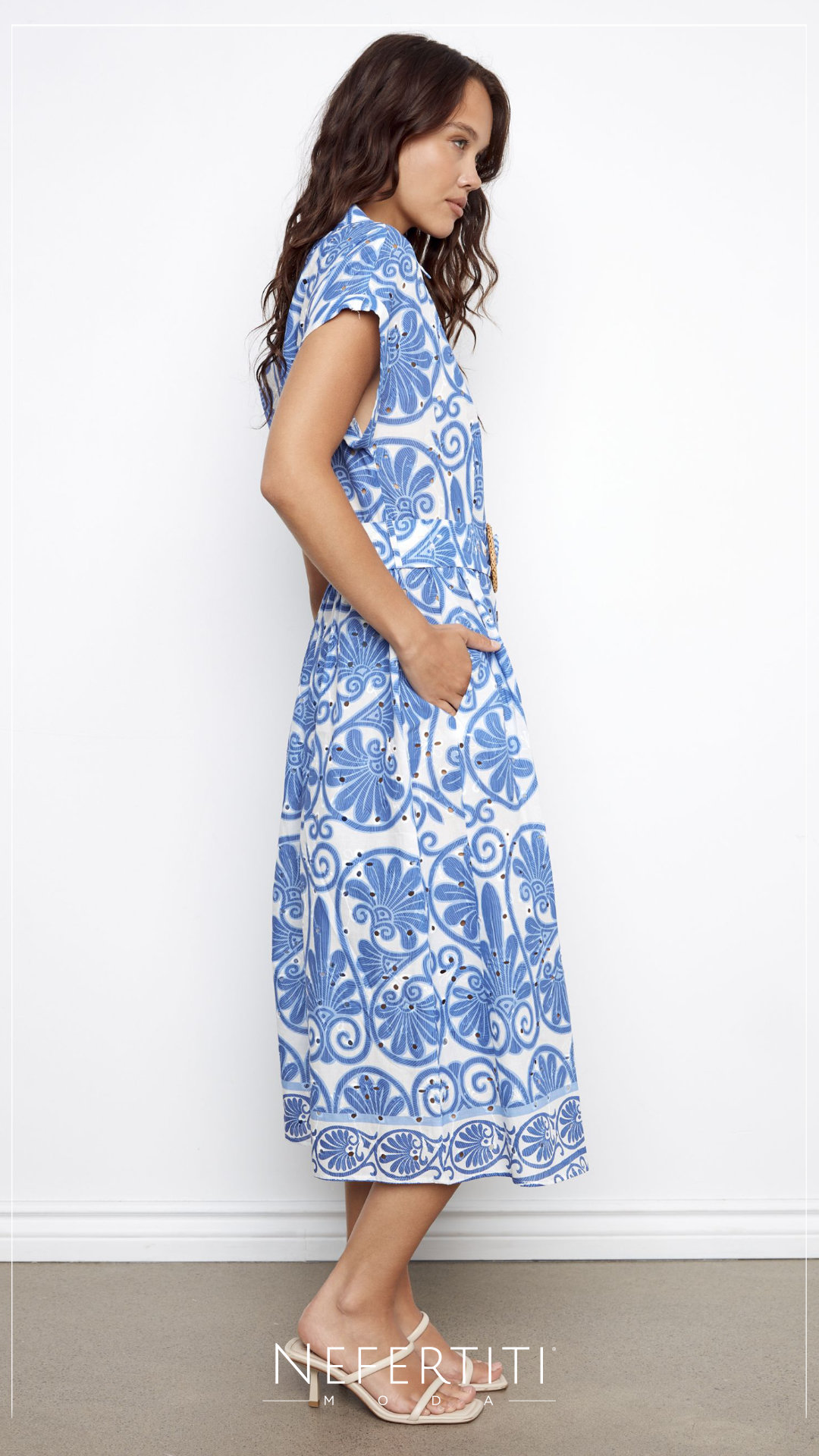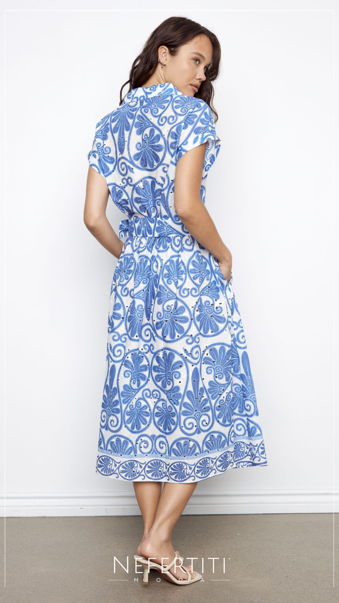 Vestido camisero librete estampado Azul Blanco D7286