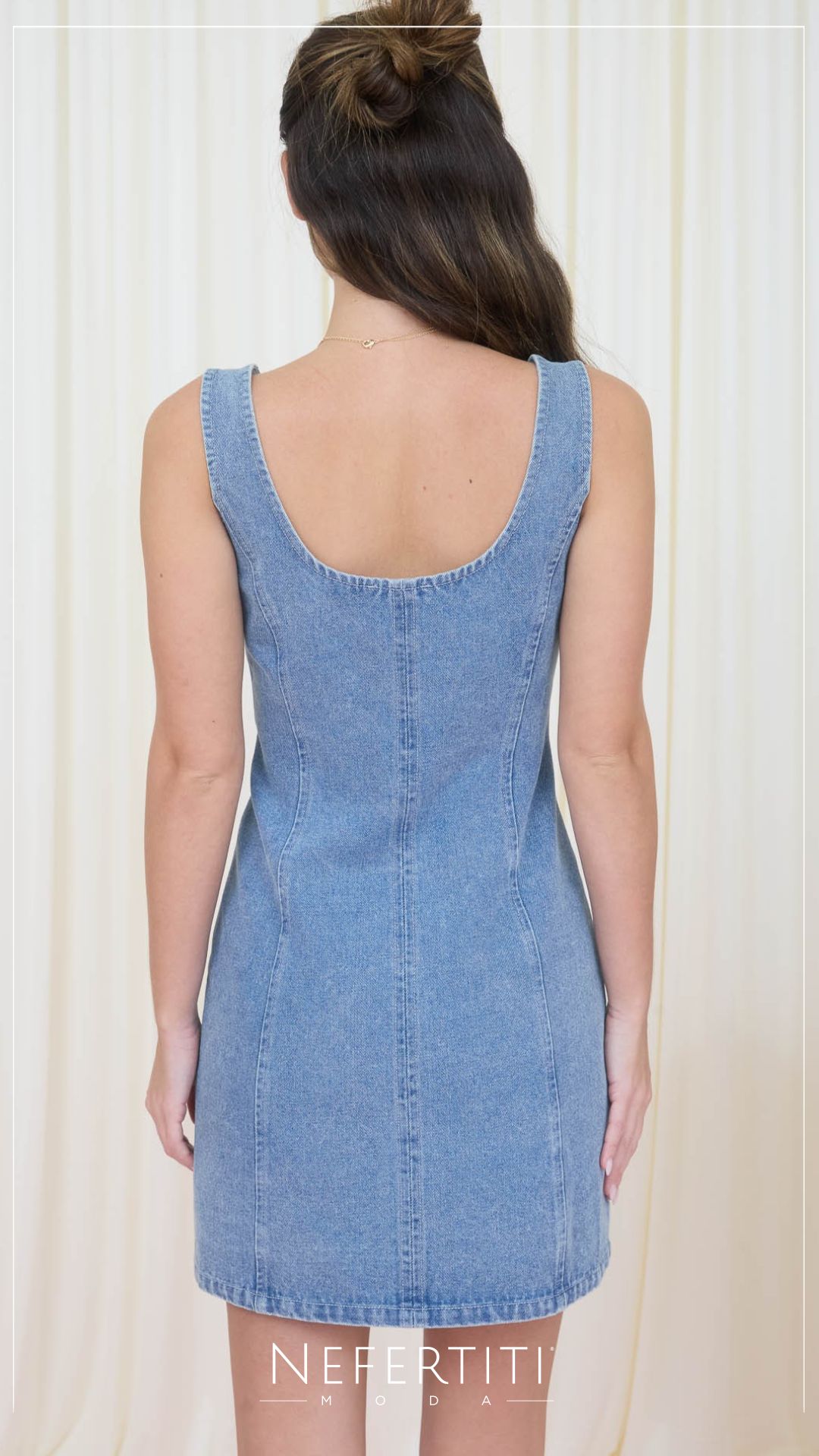 Vestido sin manga botones mezclilla Azul Claro D7334