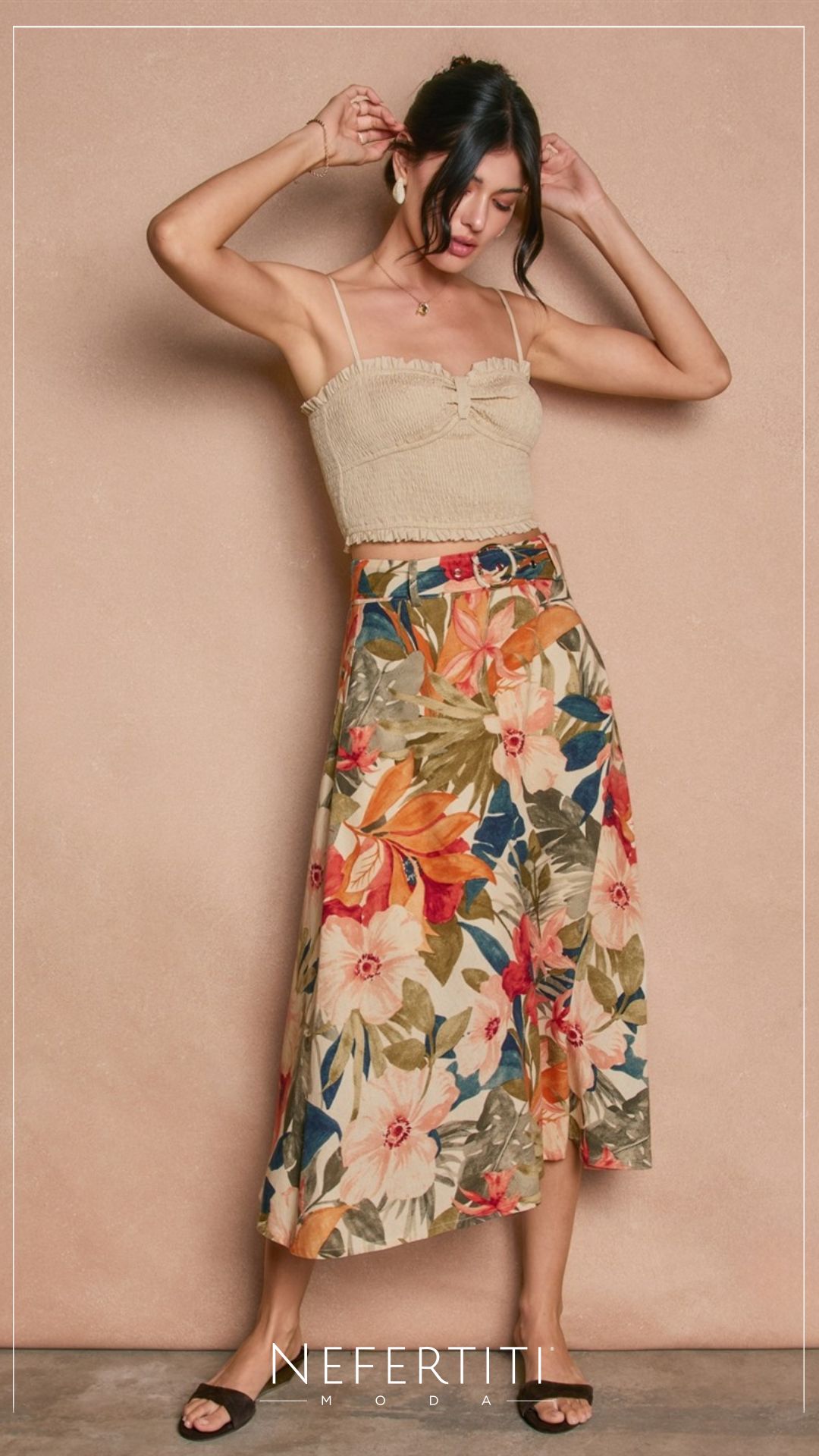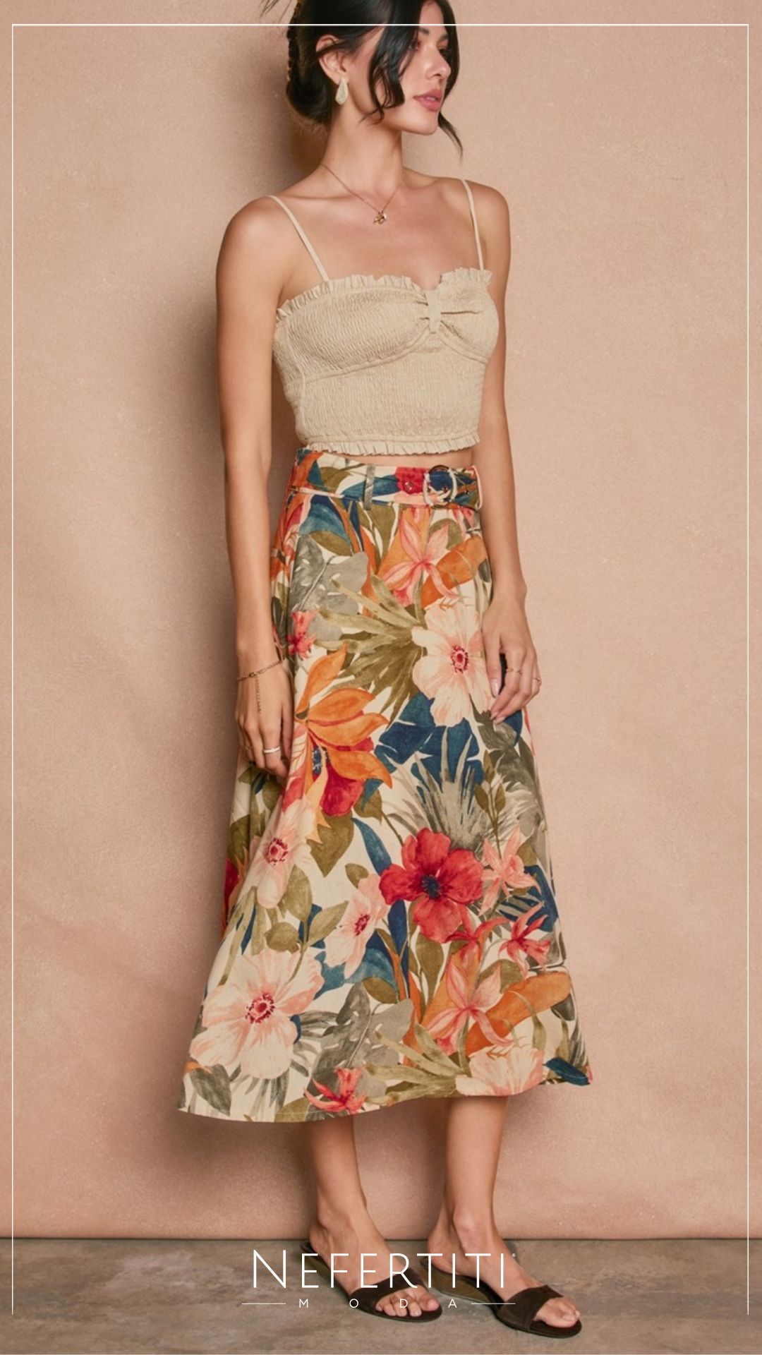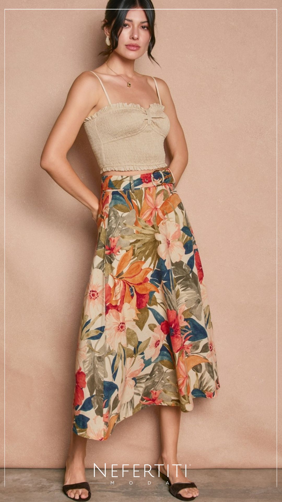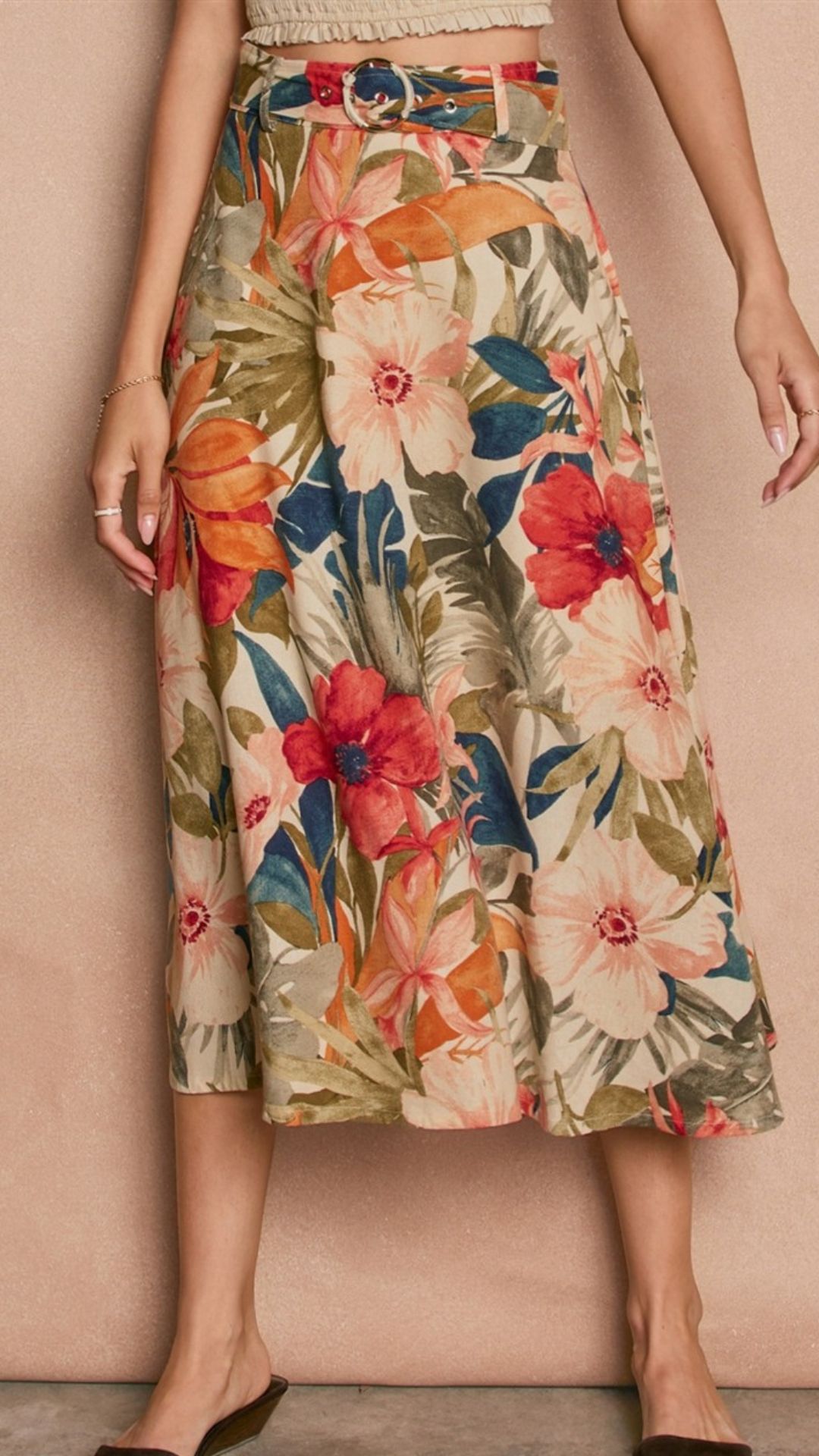 Falda maxi flores con faja Beige Coral K977