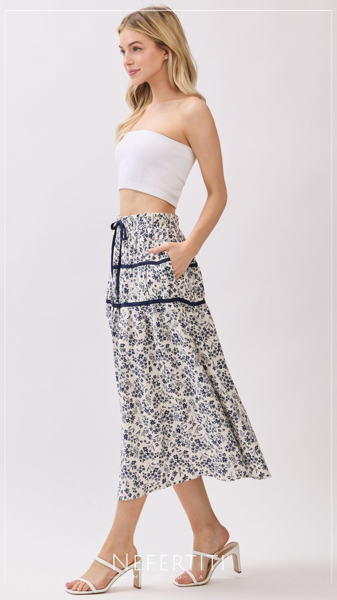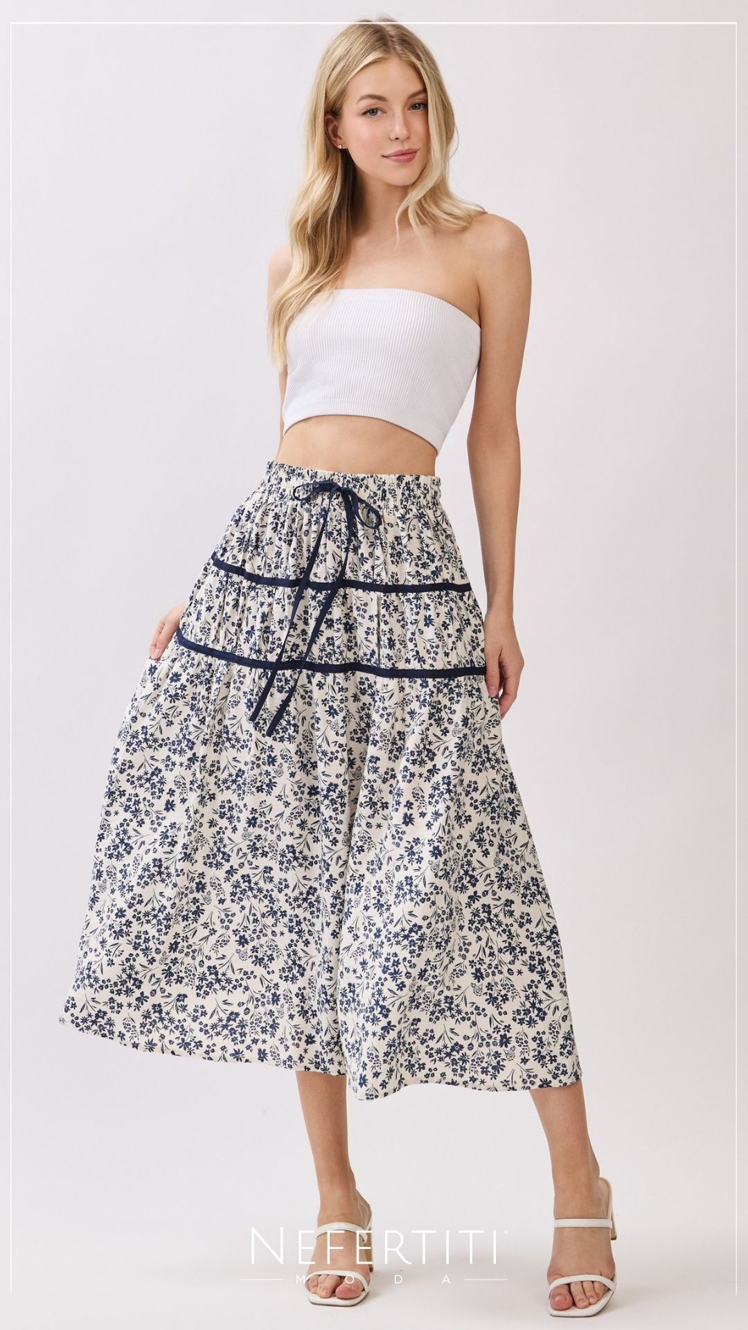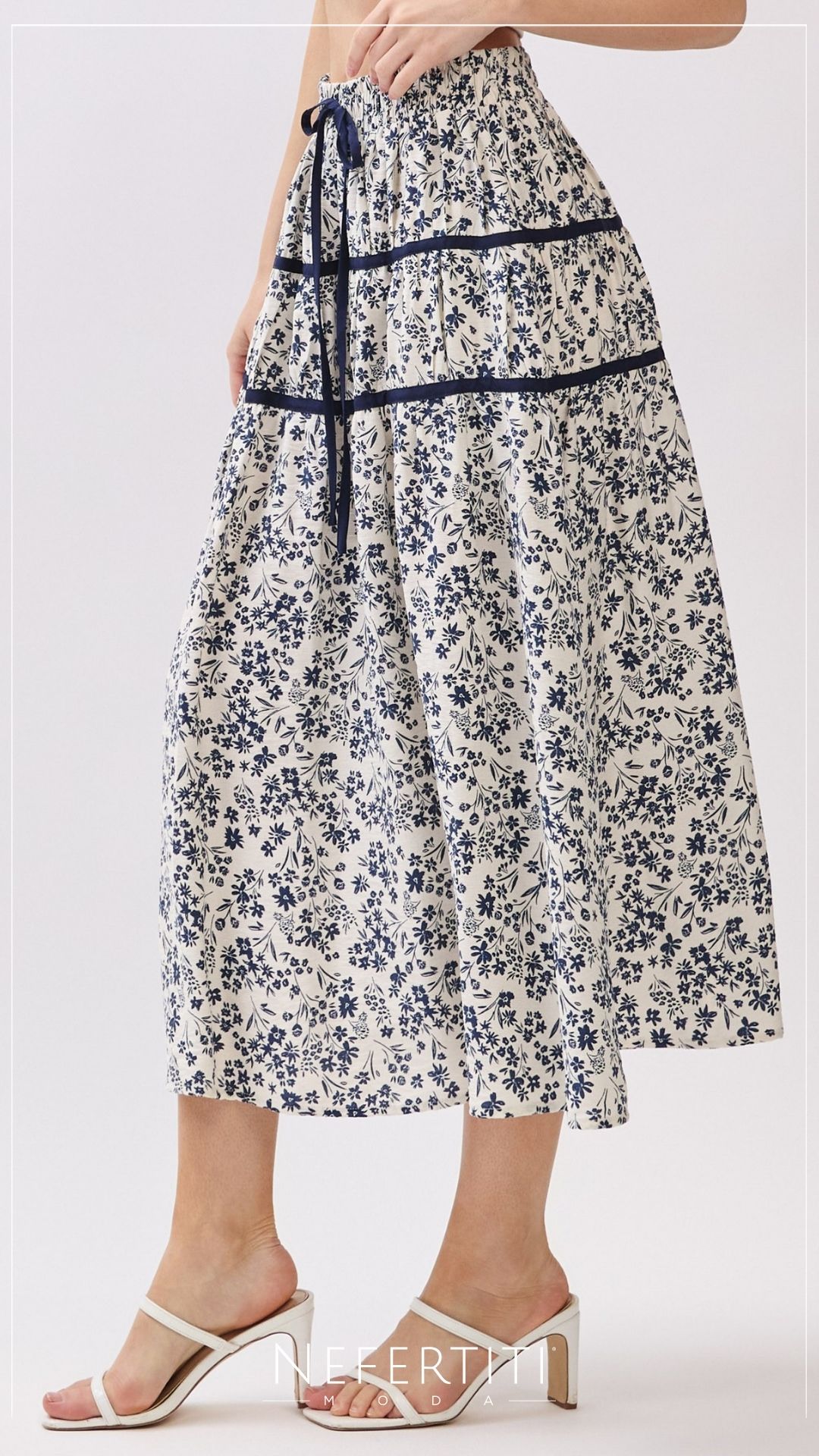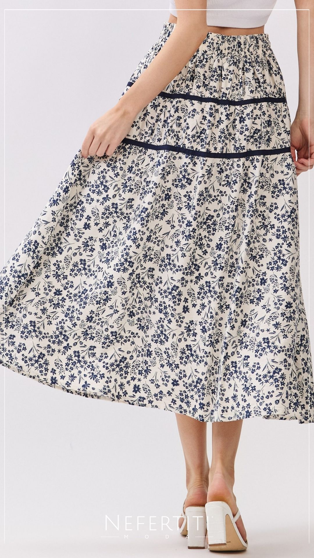 Falda tipo campesino florecitas Blanco Azul K954