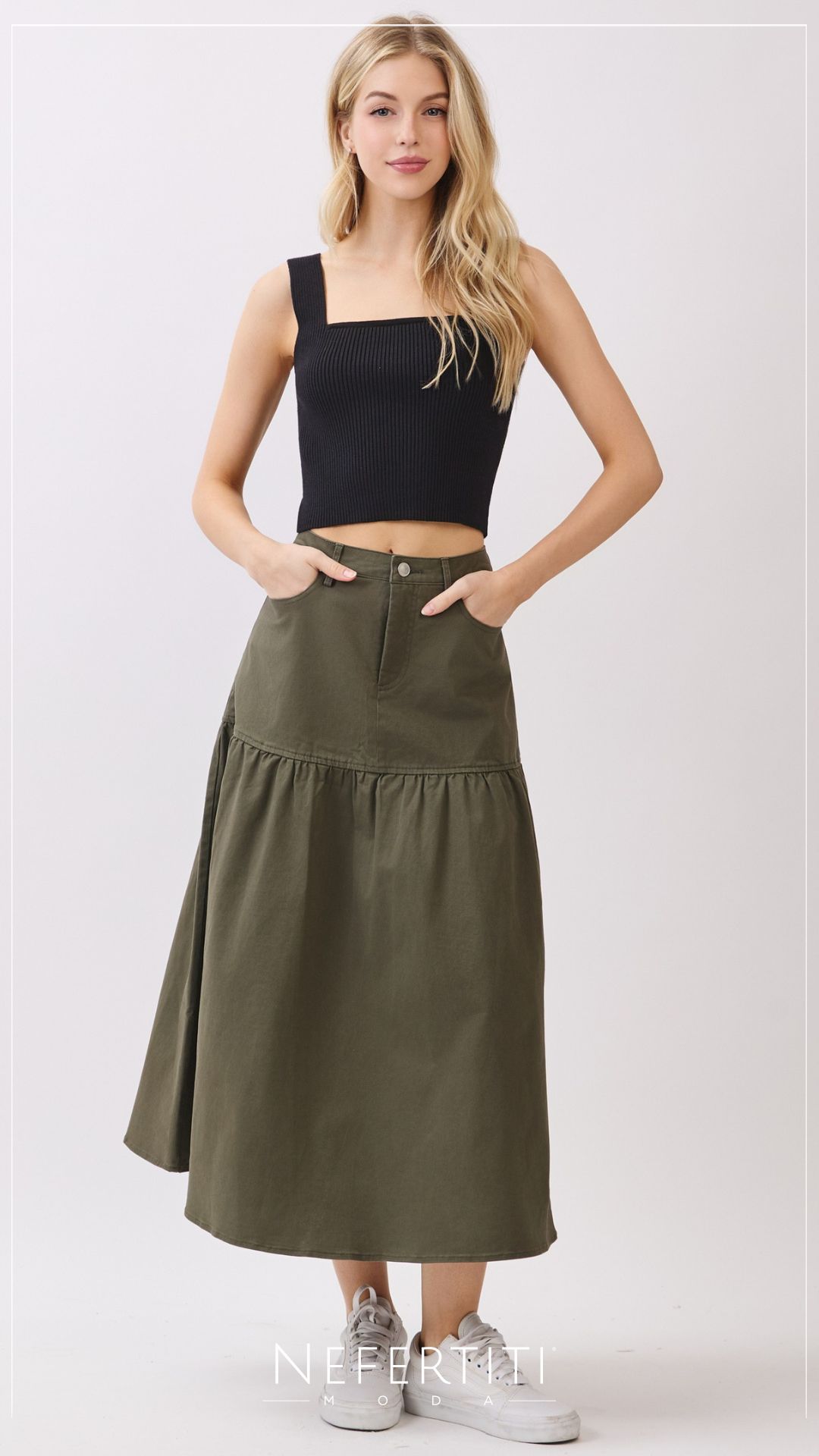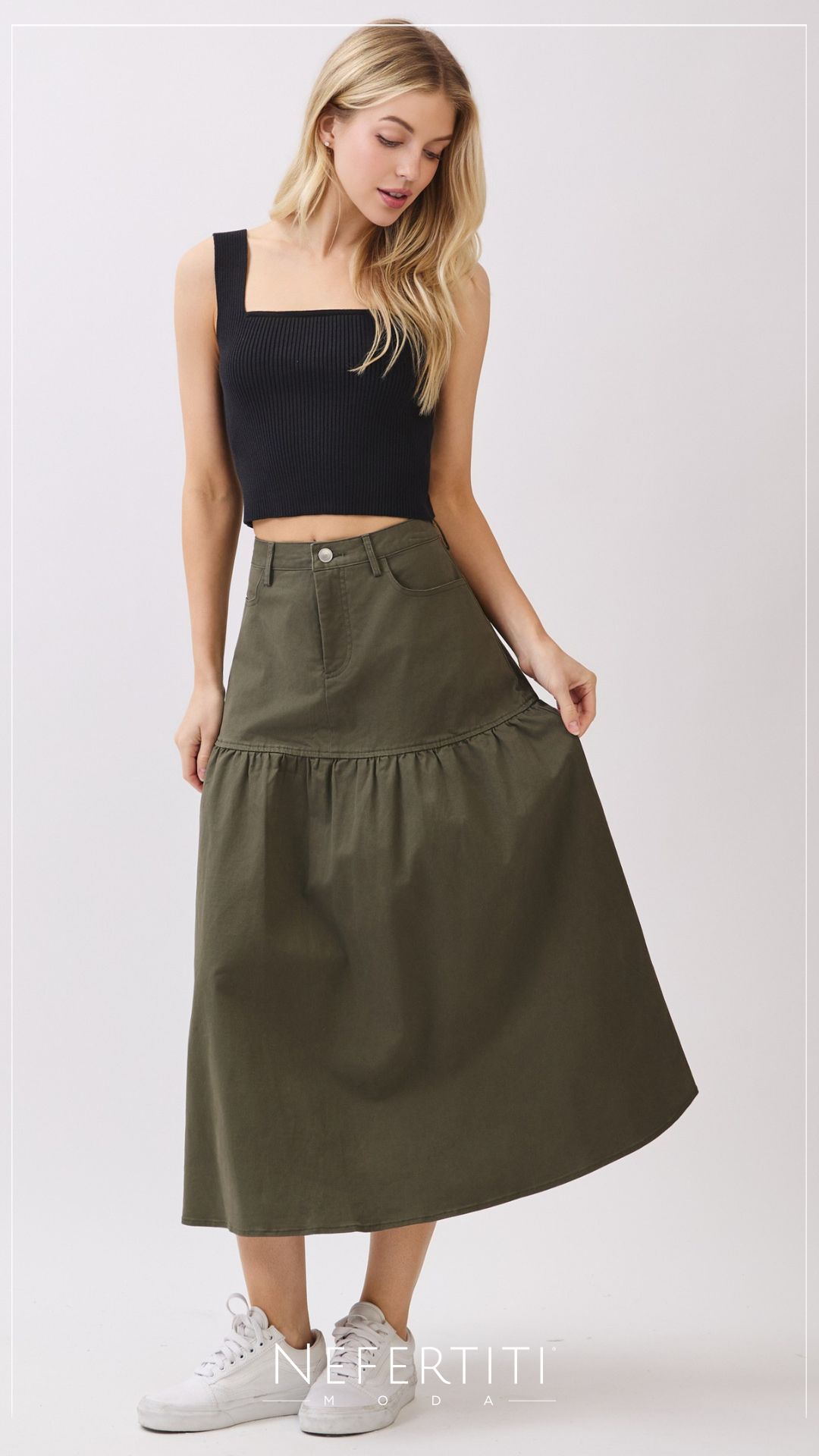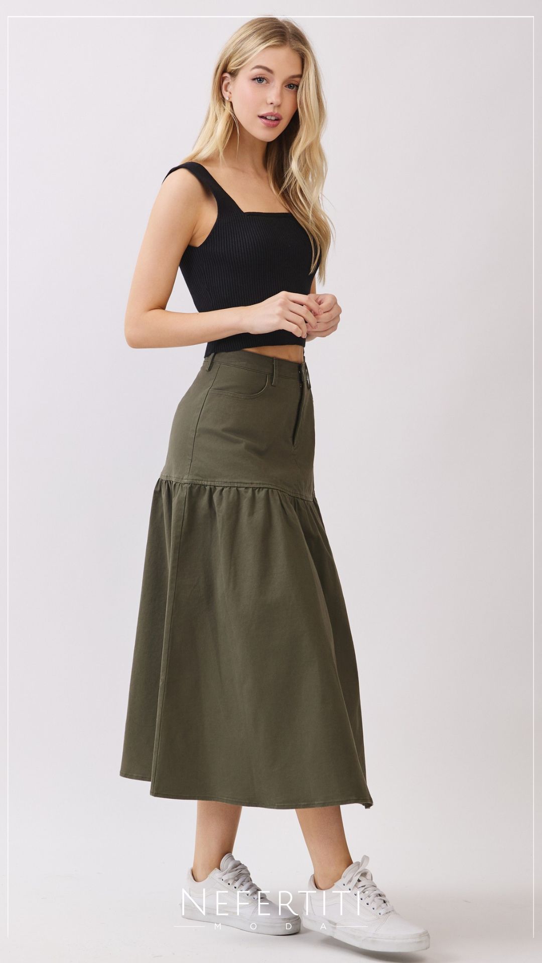 Falda tipo campesino Oliva Oscuro K963