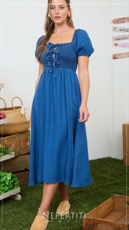 Vestido sin manga botones mezclilla Azul Claro D7334