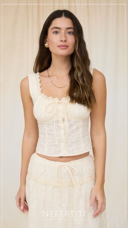 Conjunto blusa y falda librete Crema D7325