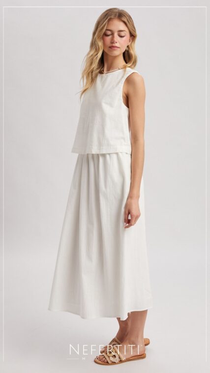 Vestido sin manga maxi Blanco D7242