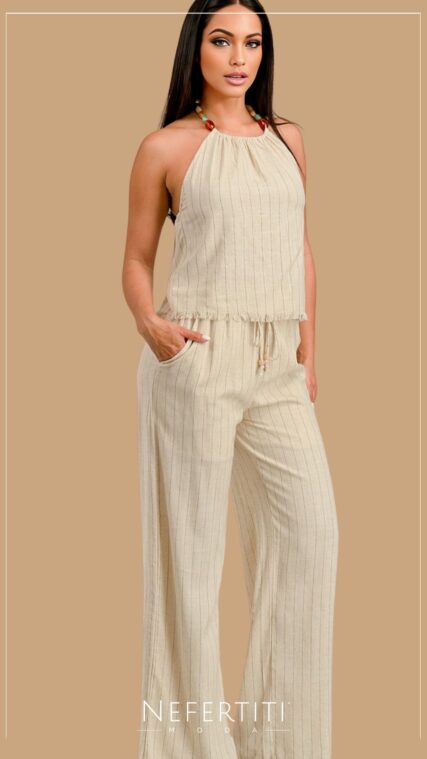 Conjunto Blusa Pantalon halter rayas Avena Negro D7190