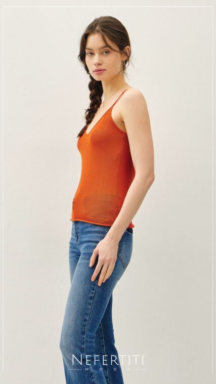 Blusa tirante ancho tejida rayas Marfil Negro T16488