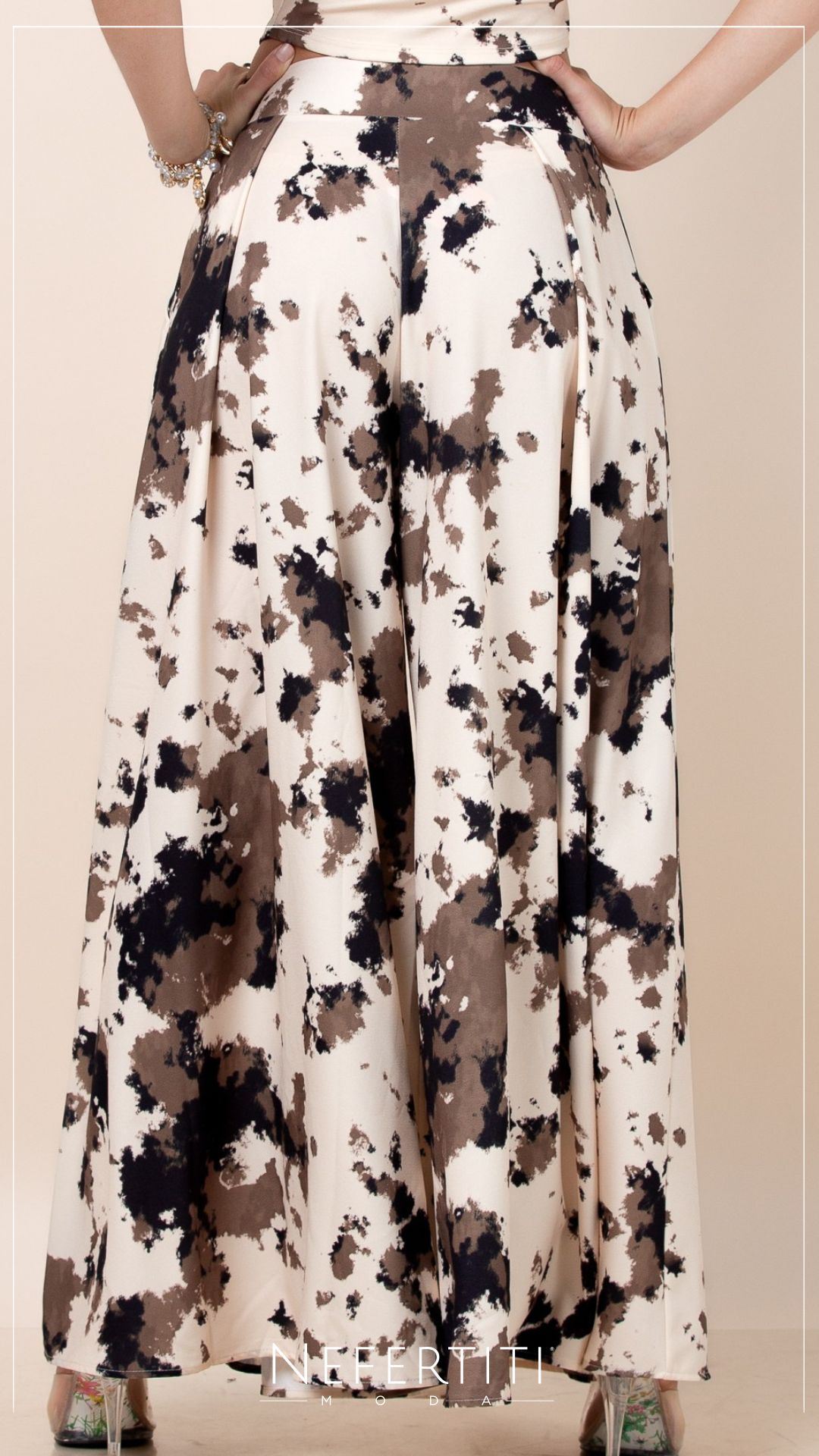 Pantalon Ancho cowprint Beige Negro Cafe PL4935