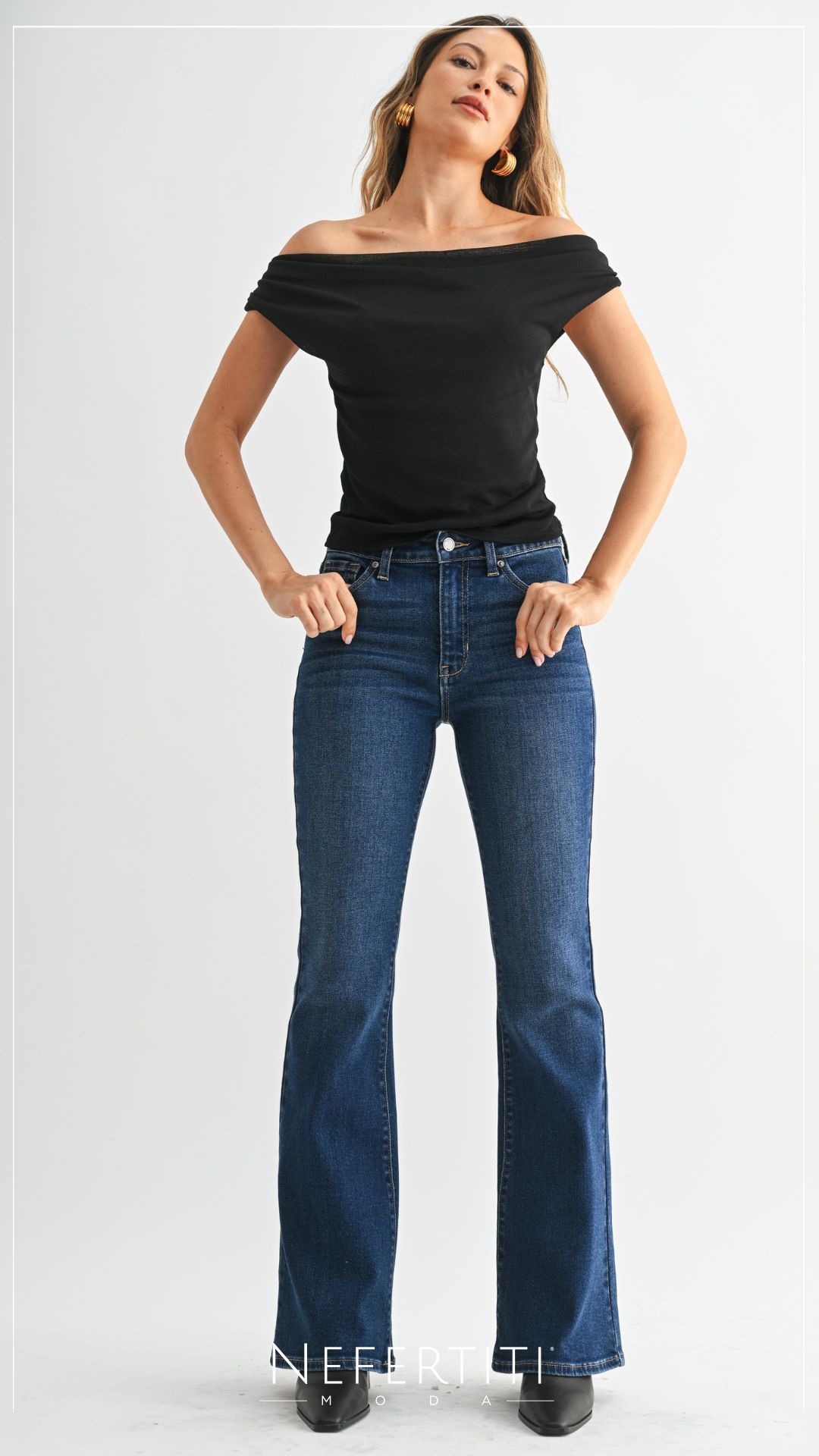 Pantalon campana tiro alto Azul Claro PL5212