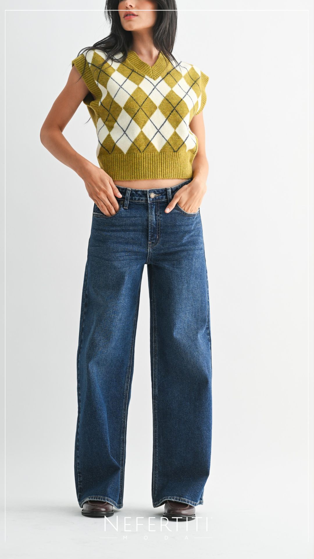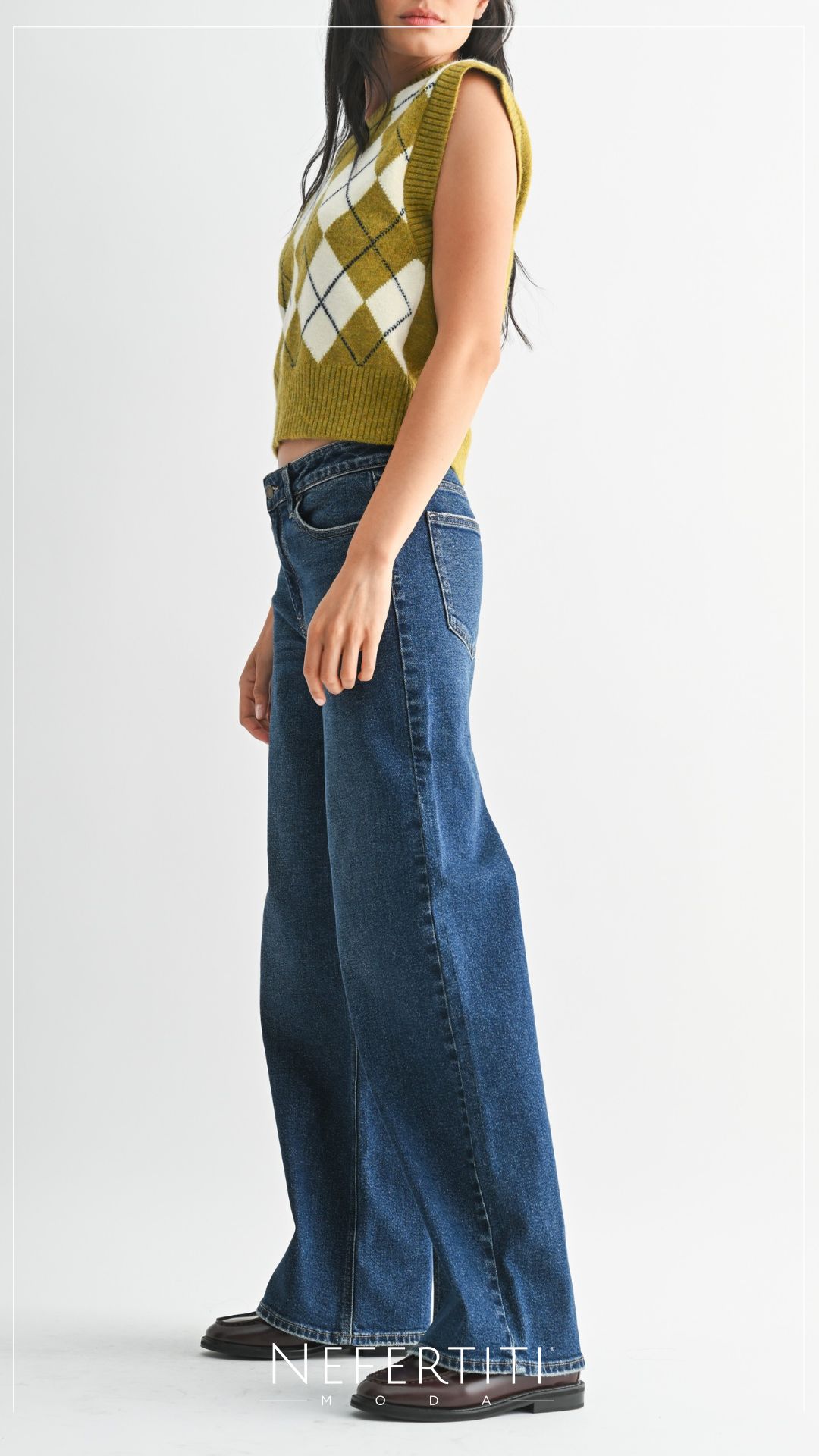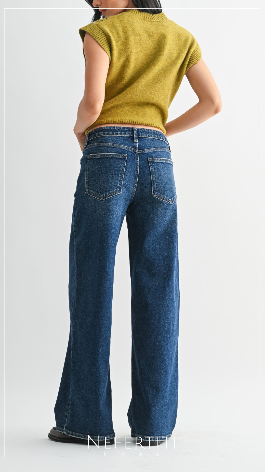 Pantalon tiro alto recto largo Azul Oscuro PL5218