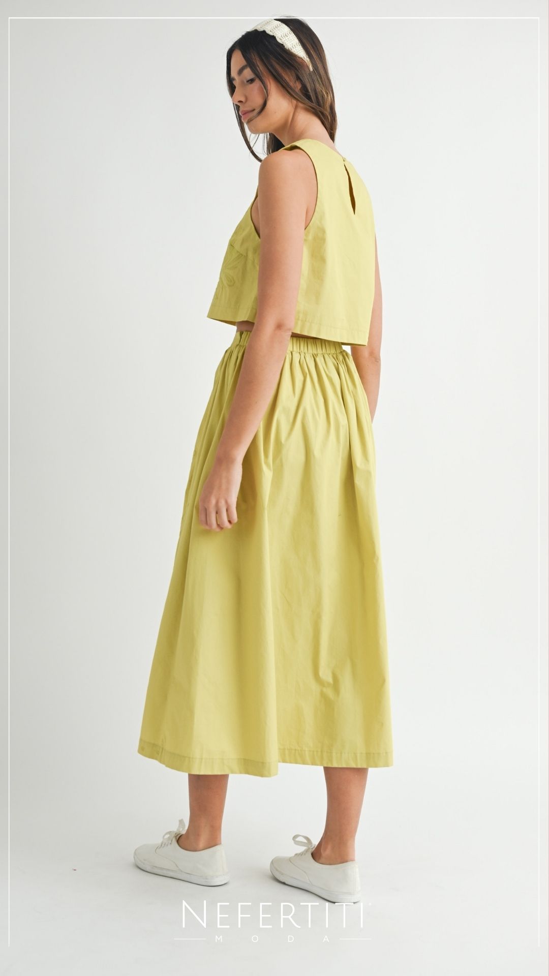 Conjunto blusa y falda midi Verde Kiwi D7316