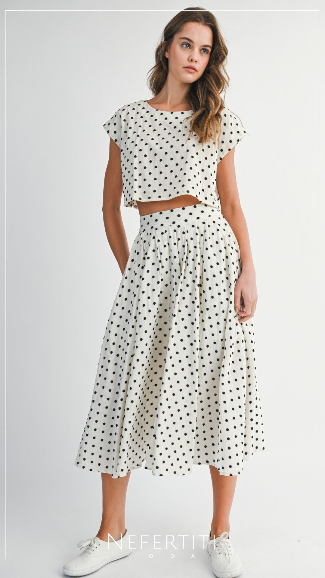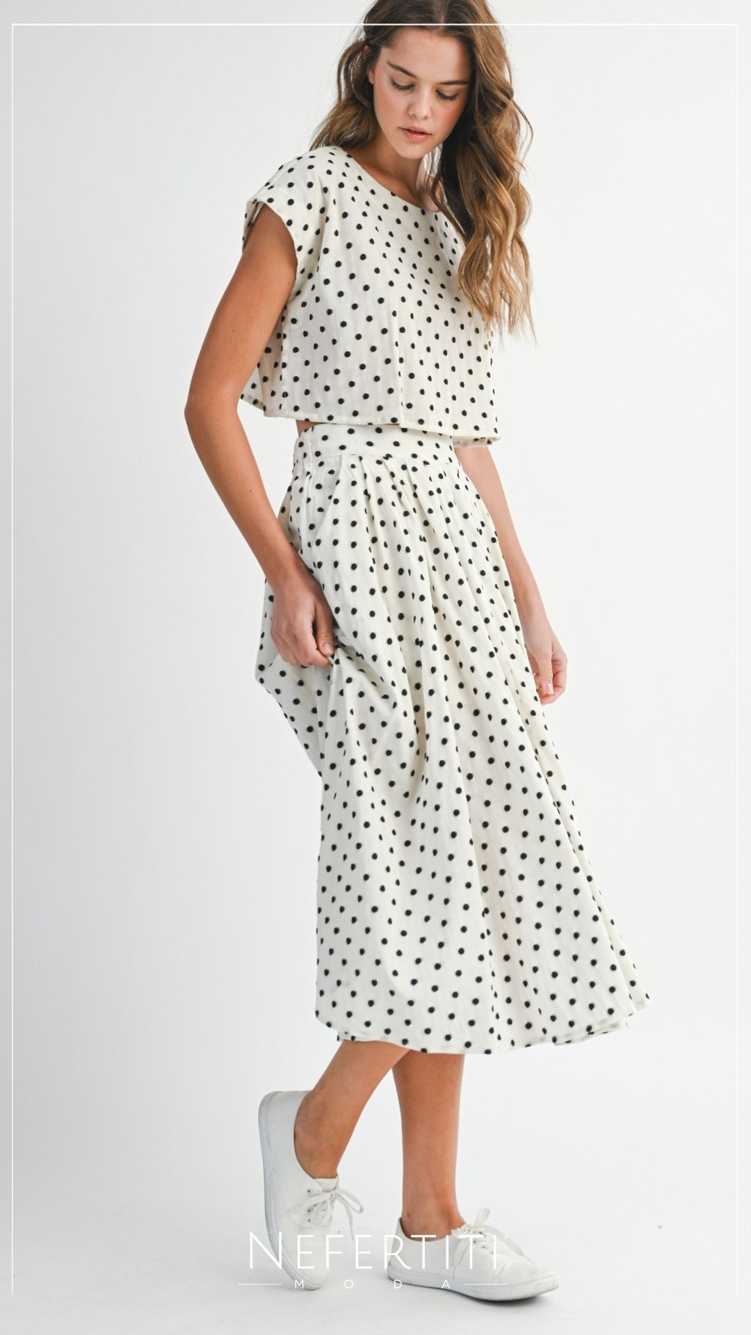 Conjunto blusa y falda puntos Marfil Negro D7298