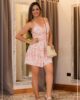 Vestido corto de tirante cruzado ajustable, falda tipo campesino, sin forro, zipper en espalda, 100% poliester.