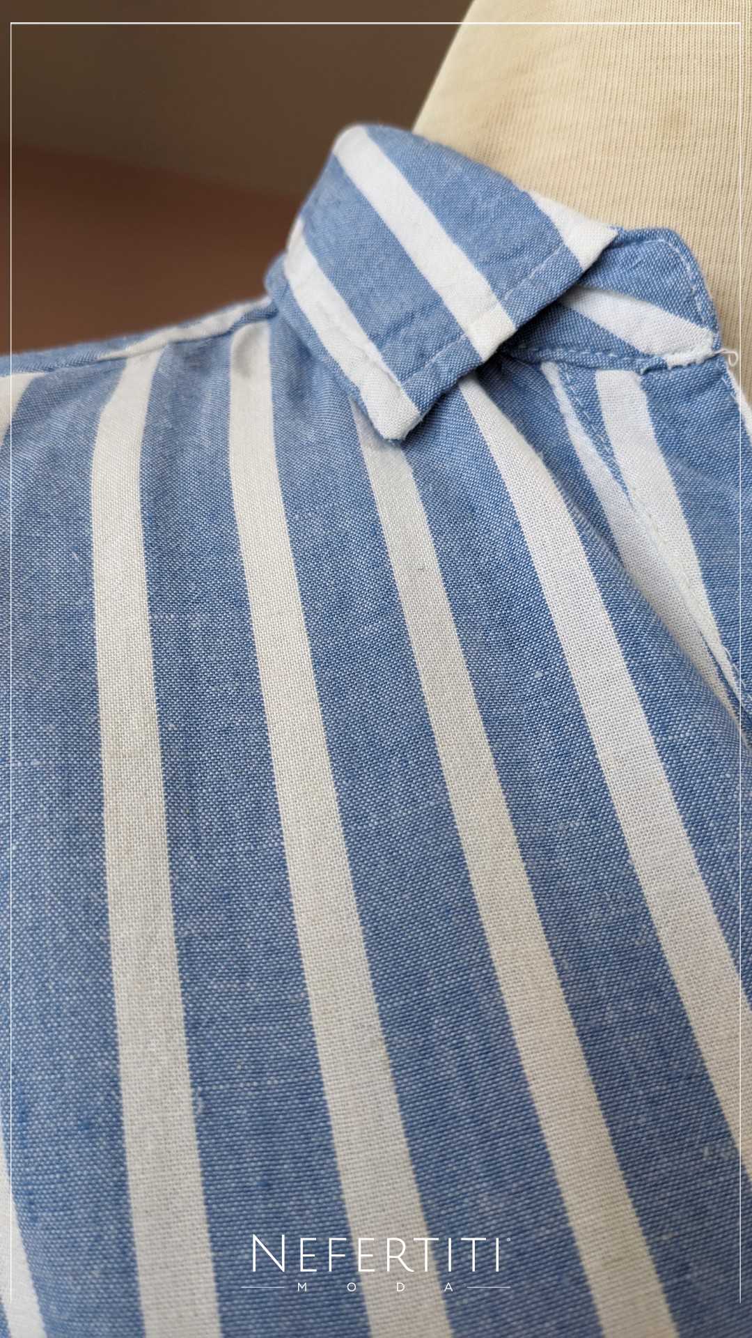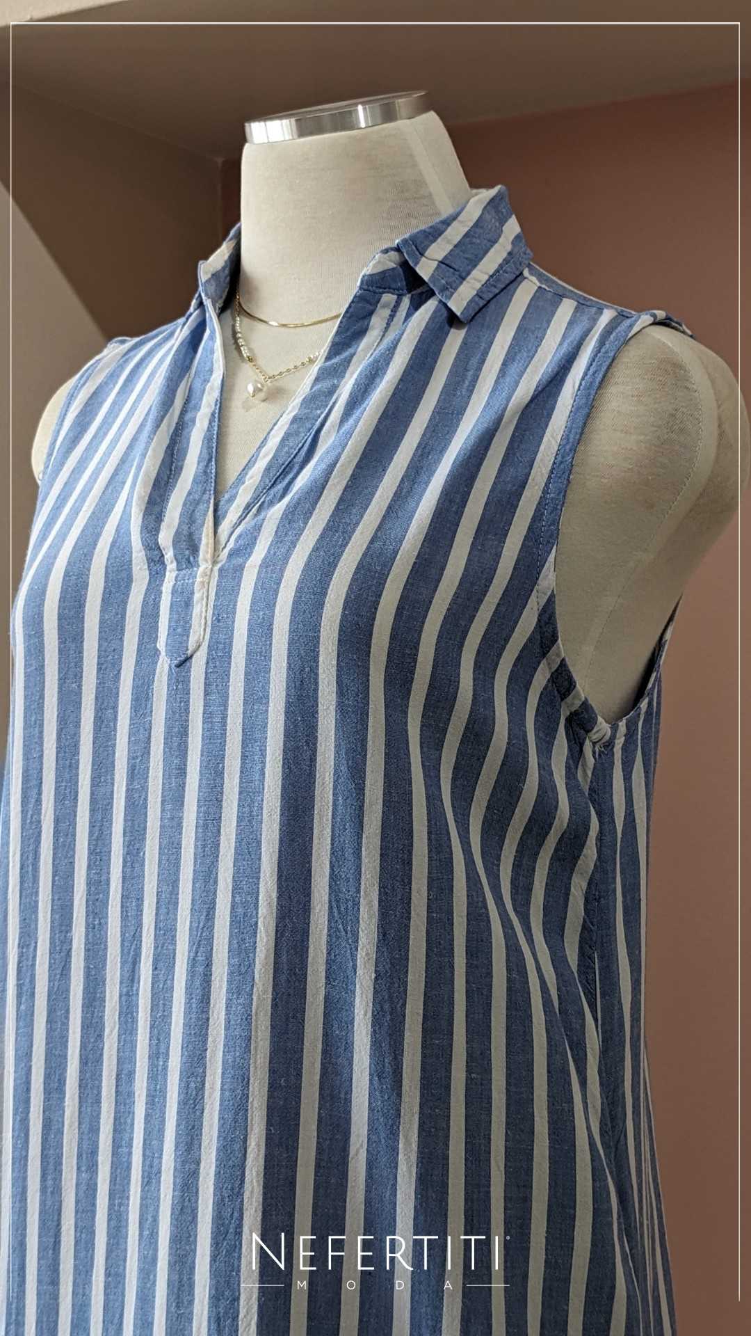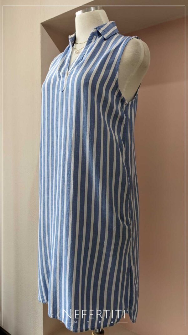 Vestido sin manga cuello rayas Celeste Blanco D6946