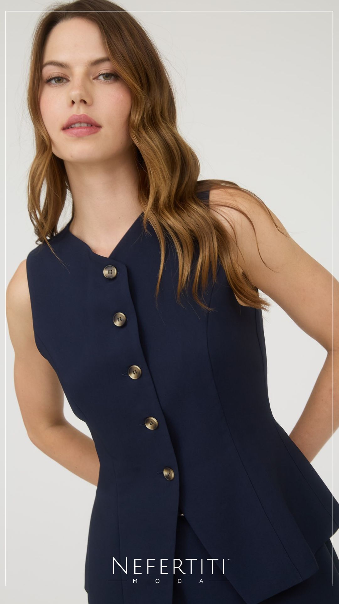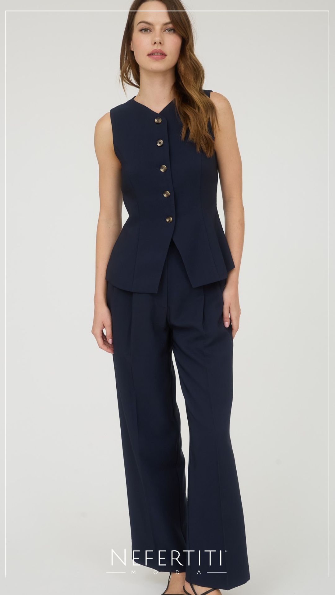 Conjunto Chaleco Pantalon Largo Azul Marino D7049