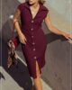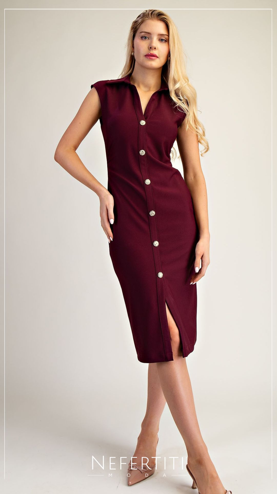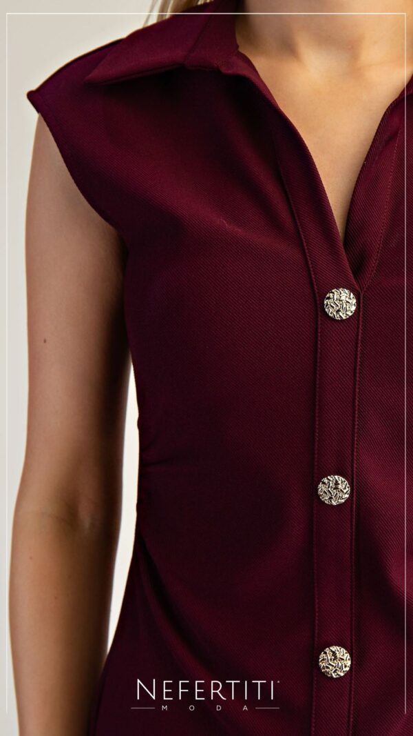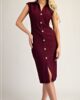 Vestido botones dorados manga corta Rojo Vino D7013